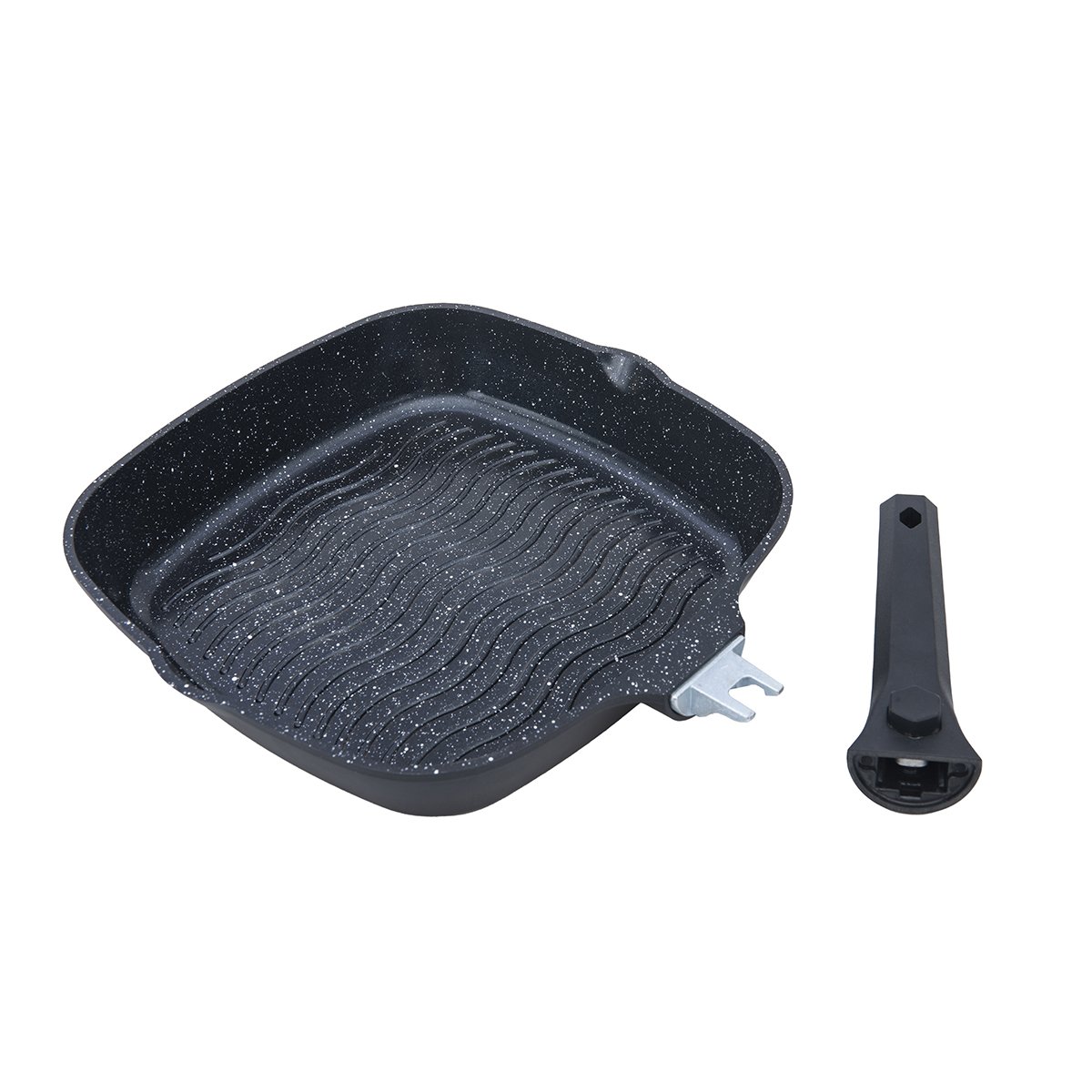 Laguiole – “Alizée” grill pan 28 cm Black, removable handle, Greblon® CK ceramic non-stick coating, induction compatible