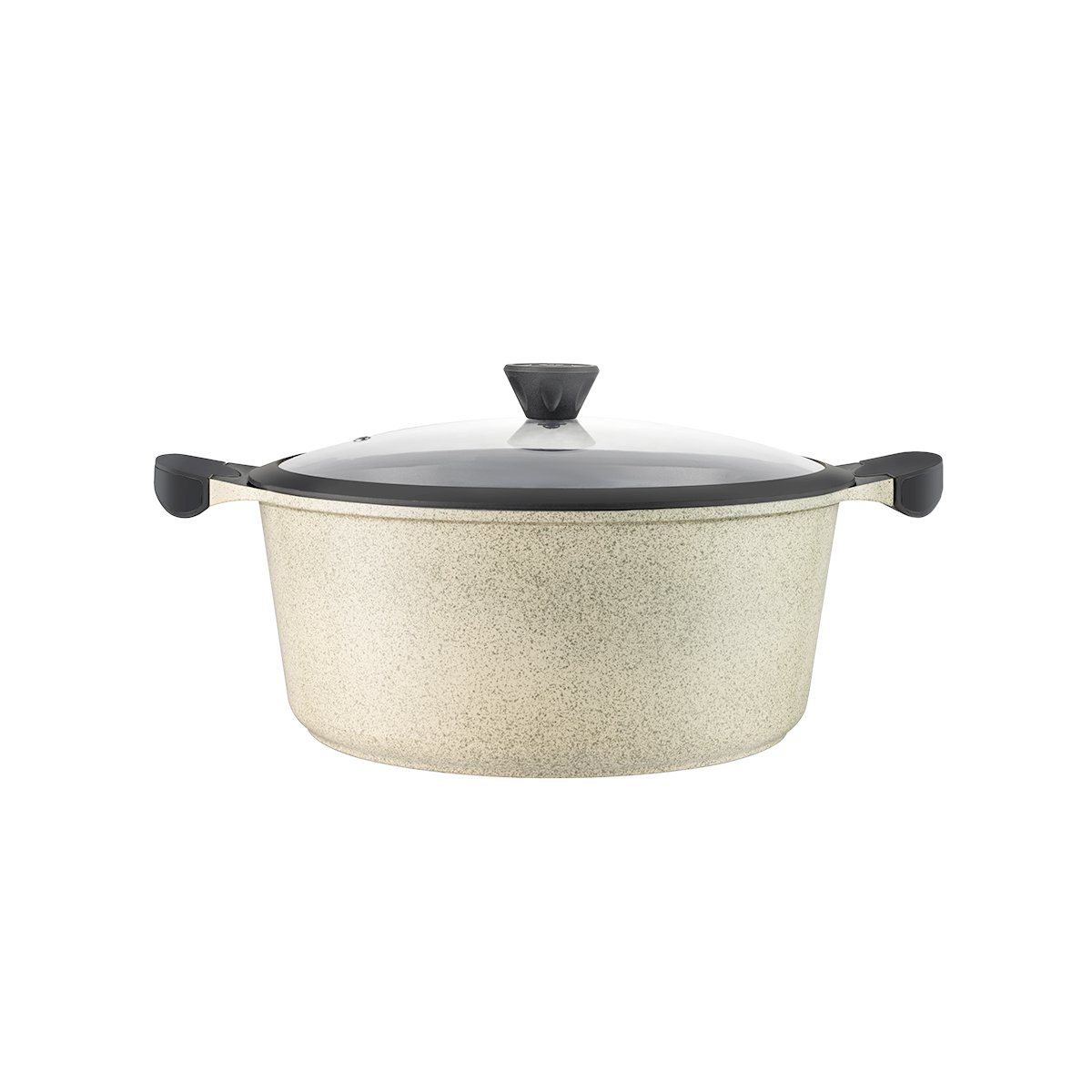 Stone-effect ceramic nonstick coating, PFOA-free and PFAS-free for eco-friendly durability.