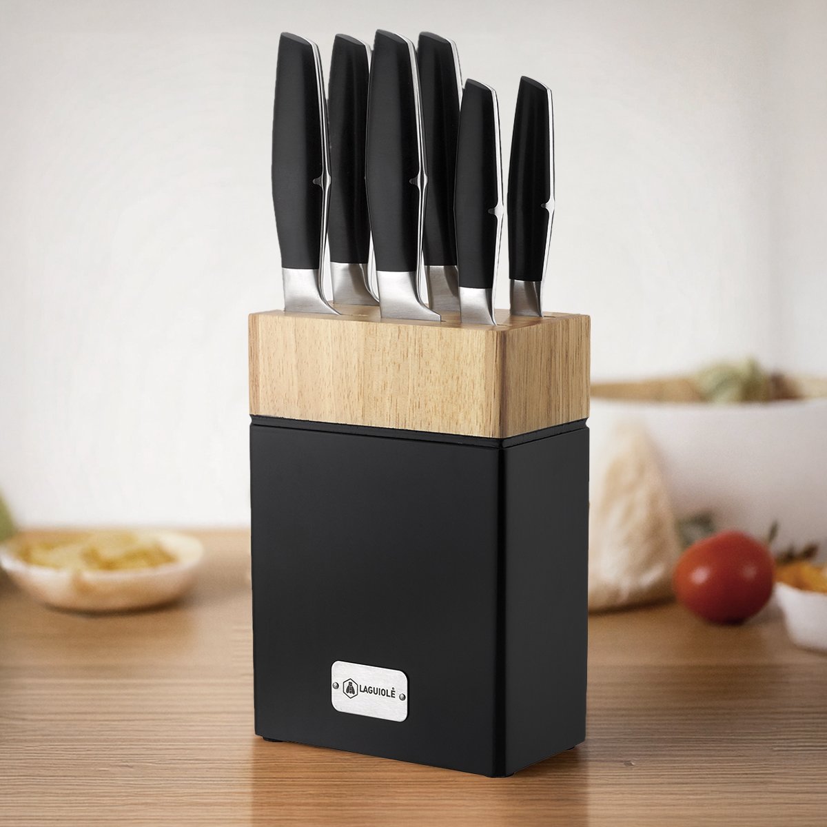 · 1 knife block 15 × 8.5 × 21 cm, made of rubberwood with pine wood
