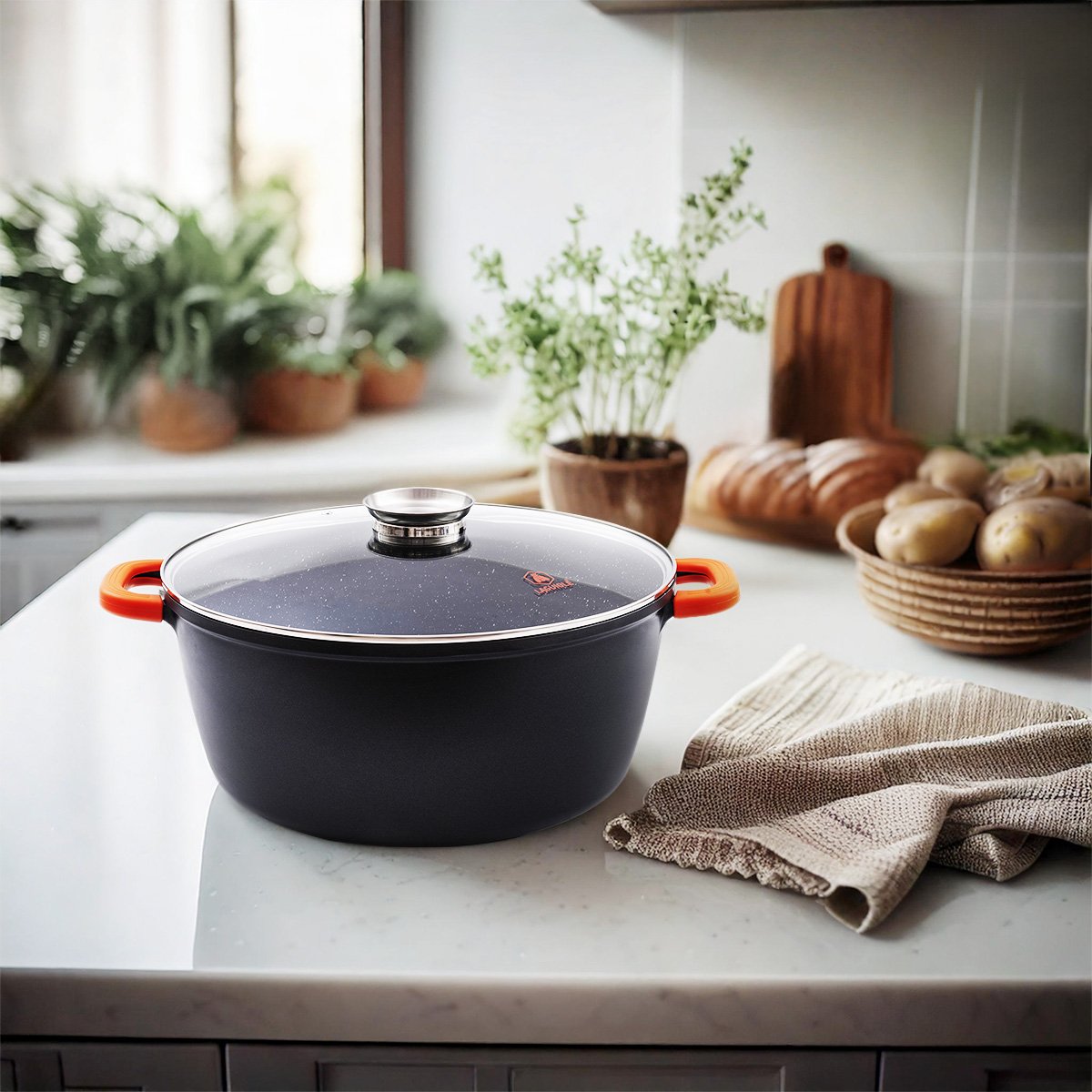 - Laguiole – Stockpot 28 cm (6.7 L) Black, Greblon® CK2 ceramic non-stick coating, induction compatible – perfect for medium-sized families