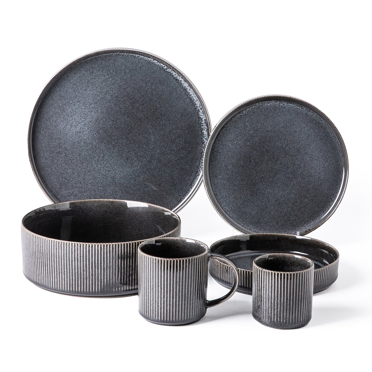 12-pieces reactive enamel stoneware tableware set – CHARCOAL